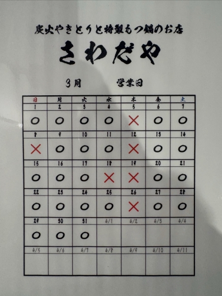 【3月の営業日】香里園の炭火やきとり「さわだや」 2026-02-27 14:48:00 香里園で1番つくねの美味しいやきとり屋「さわだや」店主の川辺です!今回も毎月恒例の営業日のお知らせ... 続きを見る